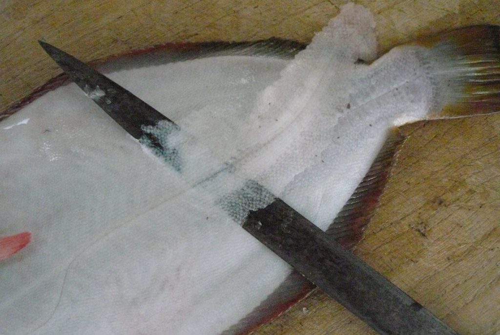 刃の薄い、刺し身包丁を使うといいだろう。身にダメージを与えないために、このやり方をする。