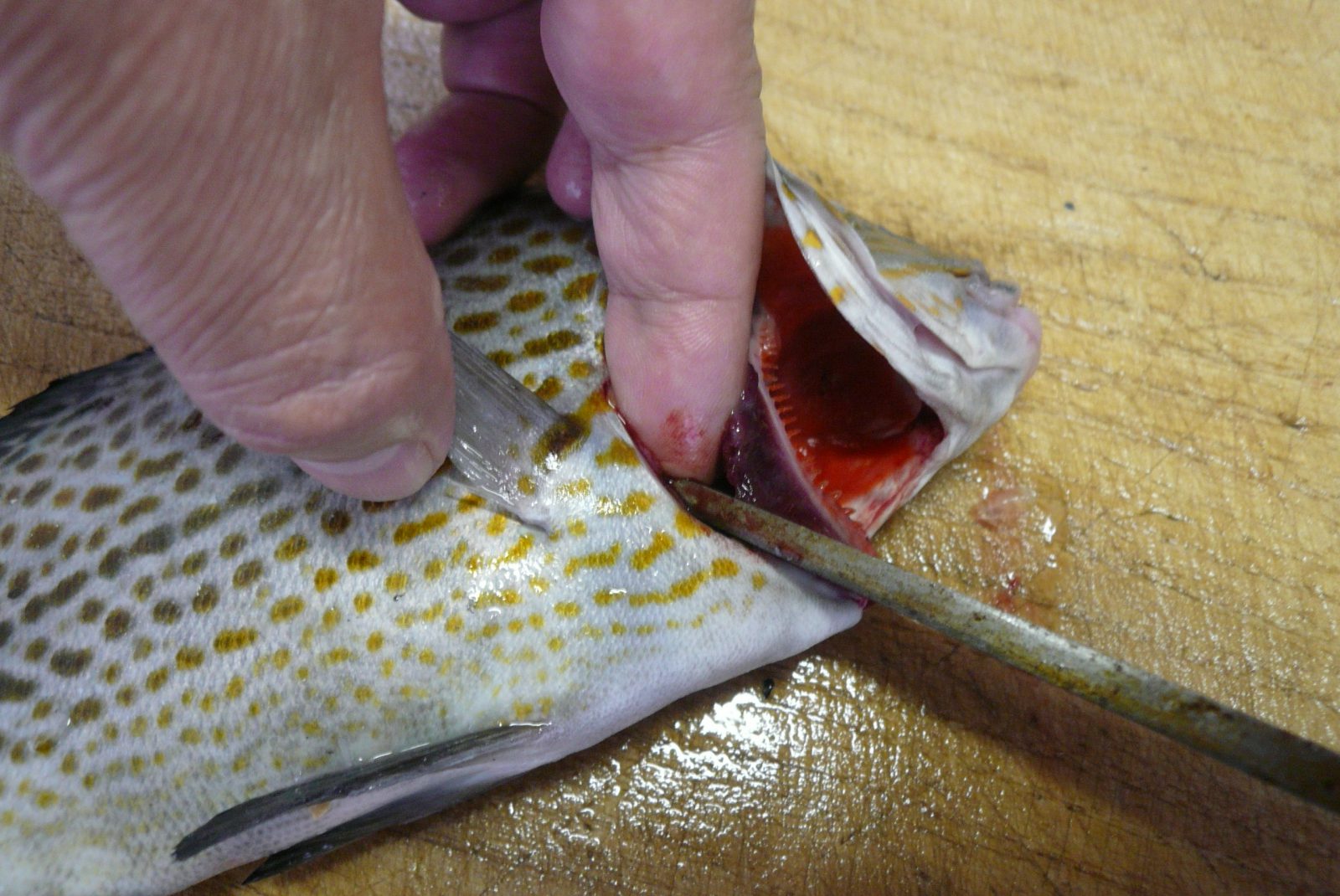 ⑤腹を開いたら、エラごと内蔵を取り出して水洗いする。