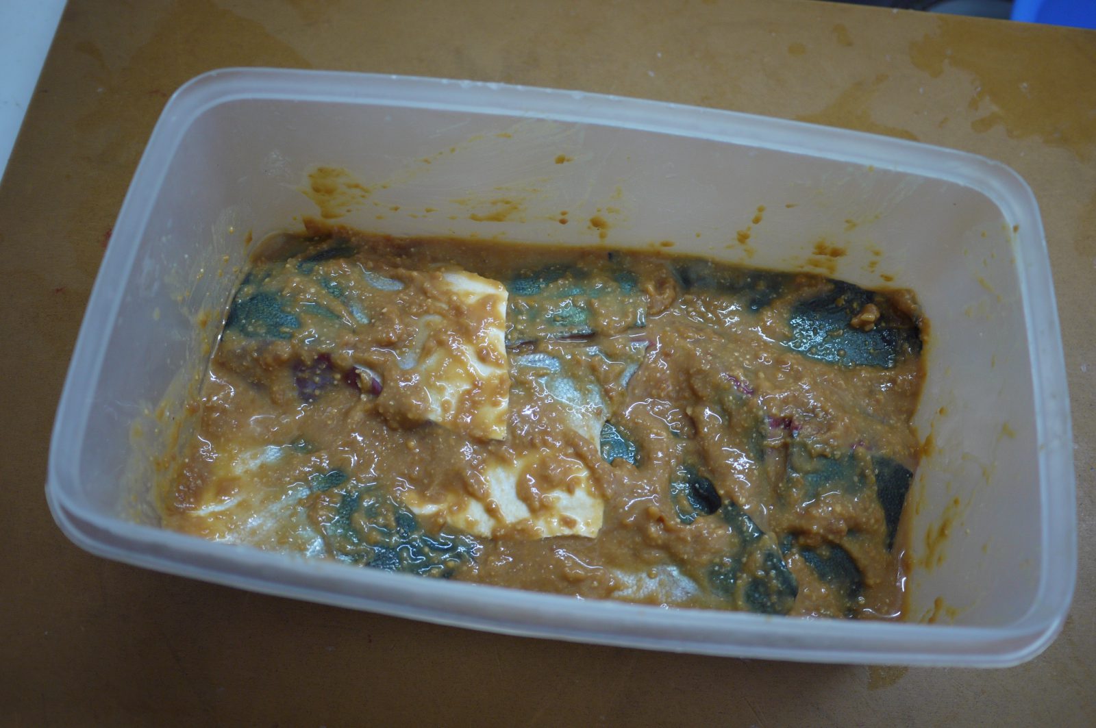 ⑧片身を三等分にした切り身を、まんべんなく漬け込む。