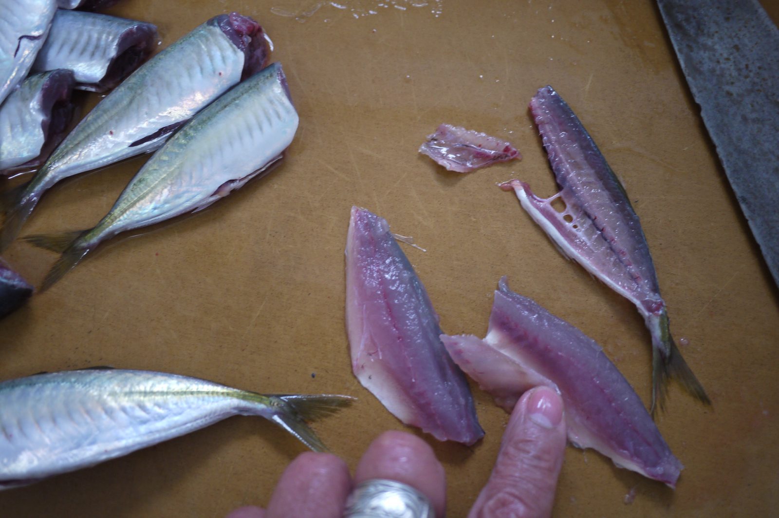 ⑩小さめマルアジの酢締めは、ご馳走だ。